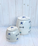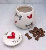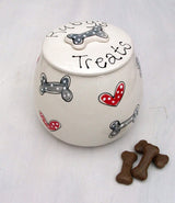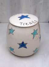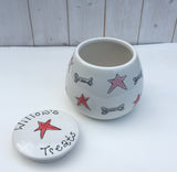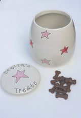 Adorable personalised dog treat jars from Purple Glaze Pottery make the perfect solution for where to store dog treats.  Please allow up to 14 days to receive an order.