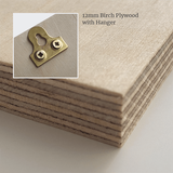 - Printed on hand sawn 12mm birch ply with the woodgrain visible through the UV ink.