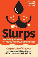 Beefy by name and beefy by nature, our famous Organic Beef Slurps with fish oils will make every dog dribble in anticipation. Drink between meals or pour over their food for a distinctive liquid treat!