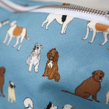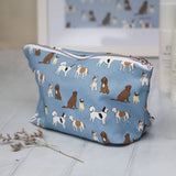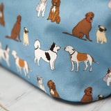 This dark blue dog themed makeup bag is a mix of cotton and panama, ensuring durability and quality.