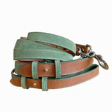 Bored of always clipping and unclipping your dog to tie them up? Our luxury flat green leather lead has a safe, innovative and simple securing handle. You will never have to worry about the fuss of unclipping your dog to tie them up again.