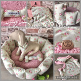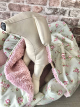 Our luxury handcrafted dog blanket is part of ‘The Dolly Collection’. This blanket is two seasons - the high quality sage and pink floral fabric for warmer days, or flip it over for cooler evenings, autumn or winter to snuggle in the cosy Sherpa sheepskin.