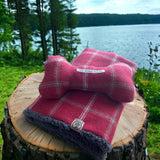 These gorgeous handcrafted blankets are part of ‘The Knighthayes Collection’. This stunning fabric is combined with a deliciously soft grey Sherpa fleece on the other side and can be used either way. Completed with our signature leather tag.