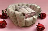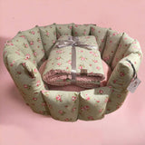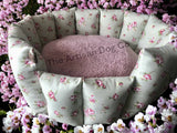 Luxury Handcrafted Pocket Sided Dog Bed, Dolly Floral, with Sherpa Fleece Cushion