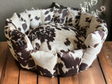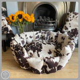 Luxury Handcrafted Pocket Sided Faux Cow Hide Dog Bed