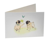 No pug greetings card stash is complete without this exquisite 'Playtime' pug greetings card by Walter & Florence.