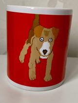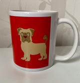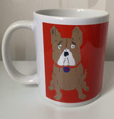 Full wrap White Ceramic Mug with Triple Dog Design print. Features a cartoon style illustration of a Pug, Frenchie and Terrier.