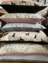 These dual sided day beds are handcrafted and available in all of our fabrics and have our snuggly sherpa fleece on the other side. Covers have a large chunky zip so are are removable and washable. See photos for fabric choices and simply add to your order.